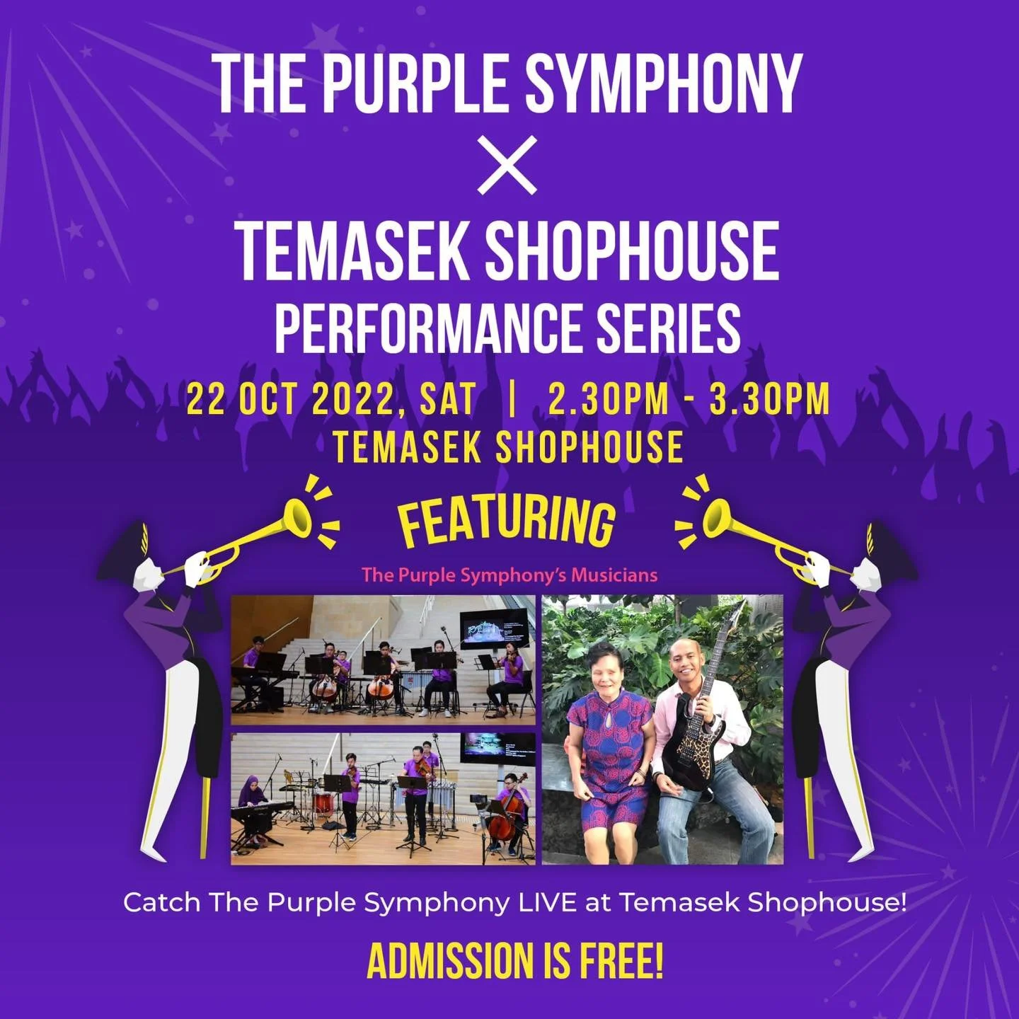 Open to the public today 2.30 pm, enjoy the beautiful music of The Purple Symphony at Temasek Shophouse!