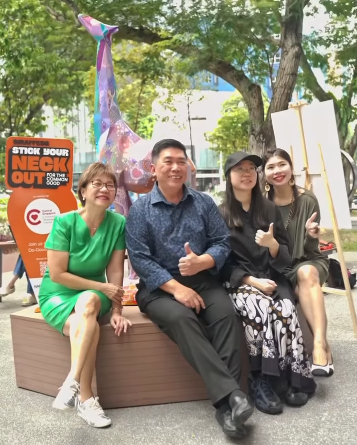 When you encounter a GiraffeSG bench, sit down, take a moment to reflect how you can ‘stick your neck out’ for others, for the common good!